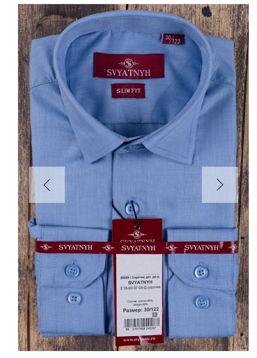 Рубаха голубая, длинный рукав , приталенная
